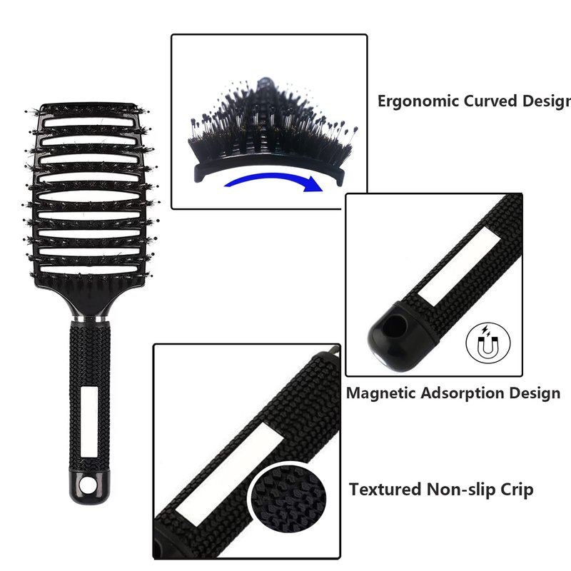 - 【Quality Material】: Our paddle detangling brushes are made of high-quality ABS resin material and natural boar bristles, lightweight and durable. They can easily glide through any hair style without pulling or scratching, while adds shine & smooth your curly thick hair.