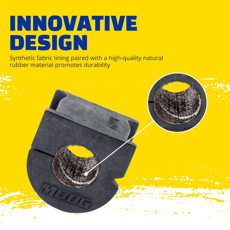 - Backed by superior materials and rigorous testing, MOOG synthetic fabric lined sway bar bushings deliver reliable performance you can count on. MOOG problem-solving innovations ensure fast, hassle-free installation