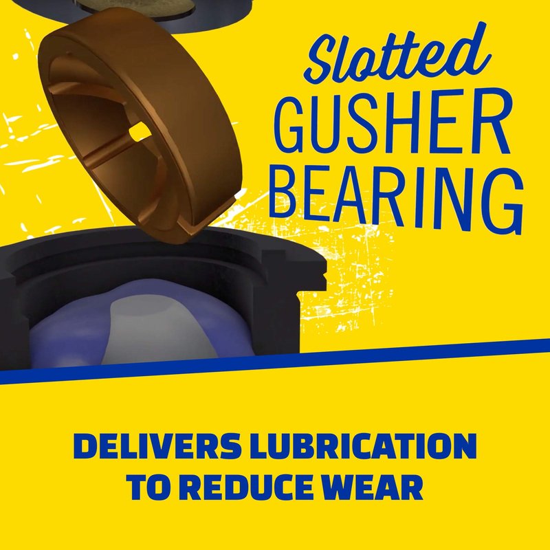 - PROBLEM SOLVER GUSHER BEARING -- Metal-to-metal design provides strength and allows grease to flow through bearing surface for reduced friction and long life