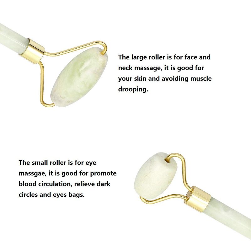 - DOUBLE-ENDED ROLLERS - This rollers massager features double rollers with a smooth polished surface. The large roller is idea for chin, cheeks, and forehead and neck, while the small roller is perfect for nose, lips and eye.