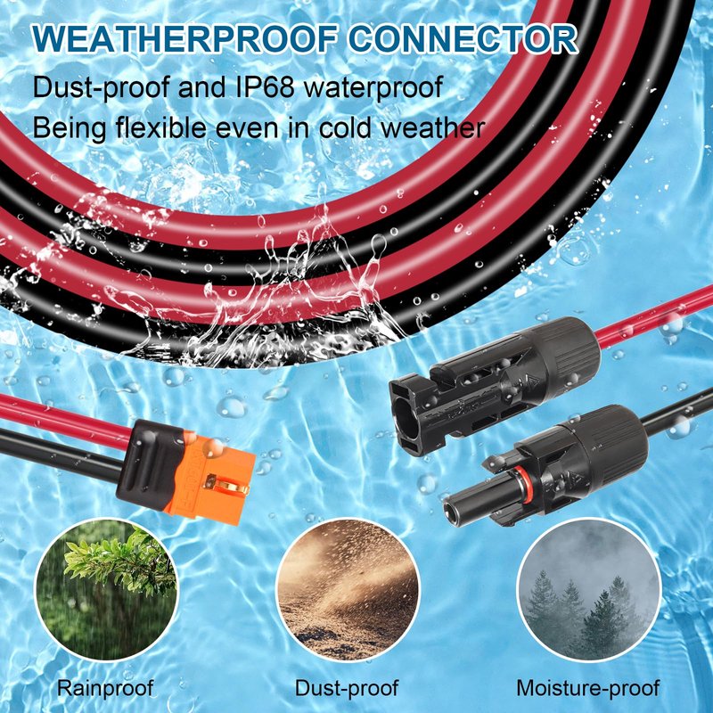 - [High Quality & Low Loss] - MOOKEERF Solar Connector to XT60i Cable made of larger diameter 10AWG tinned copper wire which is minimize power loss in solar panel systems. Tinned copper ensures faster transmission and better stability, low resistance and anti-oxidant.