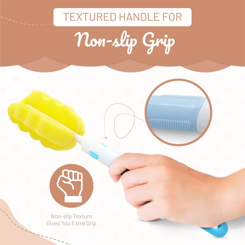 - An Eco-Conscious Choice - Each bottle brush for baby bottles features an eco-conscious polypropylene (PP) handle with a non-slip grip. With replacement sponges available, you can keep reusing the handle!