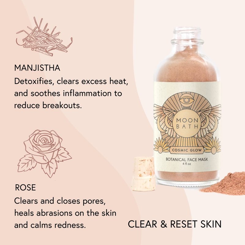 Moon Bath Cosmic Glow Botanical Face Mask | Ayurvedic Facial w/Fine Herbs & Clay. Brighten & Calm the Skin. Reduce Inflammation & Polish Face for Enhanced Radiance. Organic Beauty, 4 fl oz