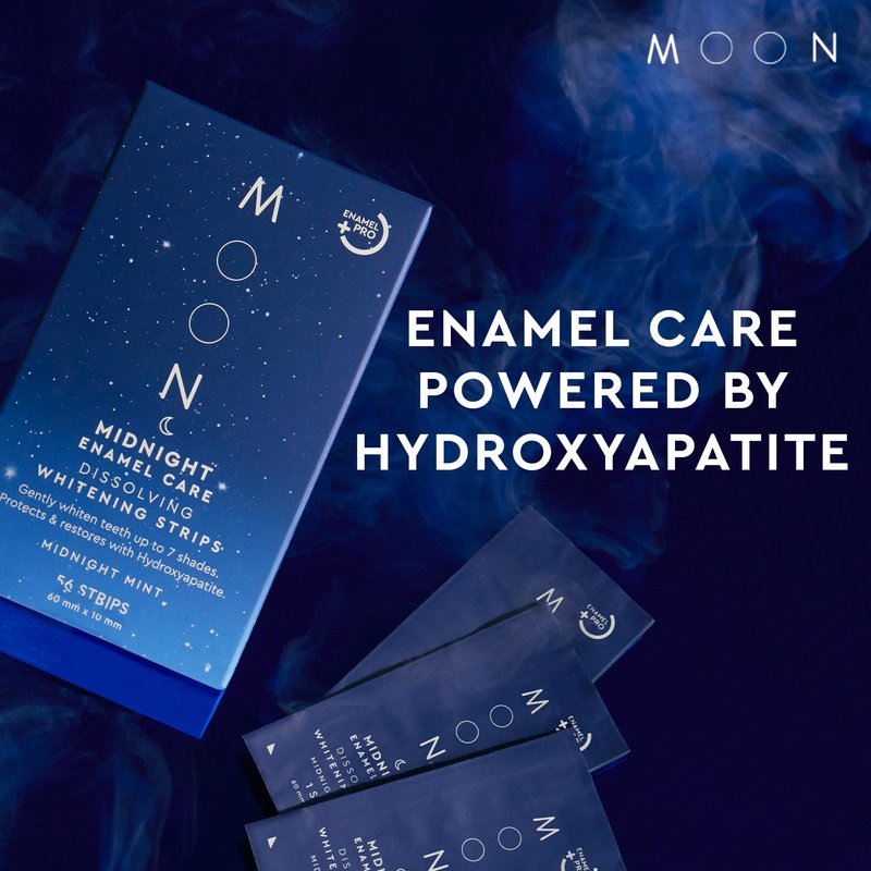 MOON Midnight Teeth Whitening Strips with HA Hydroxyapatite, 7 Shades Whiter in 2 Weeks, 28 Treatments with Dissolvable Strips, Enamel-Safe Formula, Gentle on Sensitive Teeth, Vegan, 56 Strips