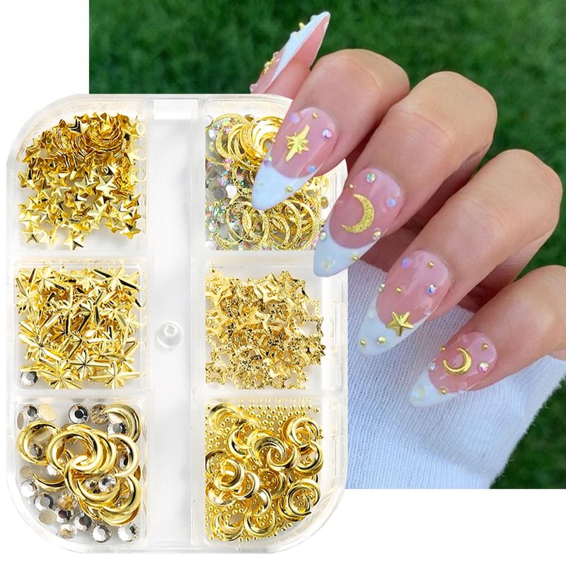 - 【3D Gold Nail Charms】 You'll get 1 box bling moon star nail studs,sufficient quantity and rich styles can meet your various needs in DIY nail art or any other handmade projects.NOTE: The glue is not included.