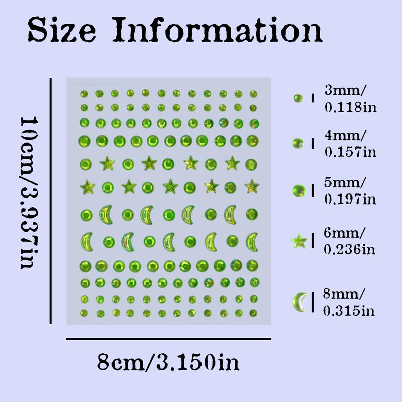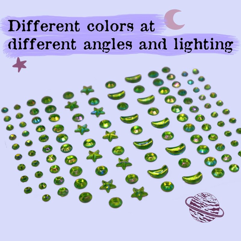Moon Stars Face Gems Jewels Stick for Women Hair Face Diamonds Crystal Rhinestones Rave Party Festival Alien Club Body Face Eye Nail Makeup Stickers Temporary Tattoos (Green)