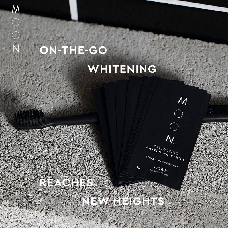 Globally-Sourced Ingredients for a Smile that is Out of this World: We're confident you've never had a whitening strip quite like this one. With an elevated look and your health in mind, MOON is creating a whole new oral experience. One you can love and look forward to. So powerful, this format goes above and beyond teeth whitening with better for you ingredients infused into the formulas. Real, vegan, fluoride free ingredients helped to create this new-age look and feel for your whitening, transcending your smile to a whole new level of bright white. A Remarkably Whitening Experience for Your Teeth: Every tooth is left feeling brushed to a velvety clean. Elevate your bathroom sink and your smile at once with sugar free teeth whitening dissolving strips that are infused with essential oils, peppermint and silica. MOON thought of everything with this new proprietary blend that even includes coconut, cranberry, tea tree and the superfood camu camu. Crafted with an apothecary in mind, the proof is in the results: a white, clean, smooth, brilliant smile every day. Consciously Crafting the New Wave of Oral Care: Founder Shaun Neff was seeking something different with his new oral care line. He wanted to create a teeth whitening products that went the distance... to the MOON. In fact, the entire MOON line was crafted deliberately with better-for-you ingredients, and an originality that matches its user. Since inception we have been dedicated to giving back and are committed to supporting healthy smiles throughout the world. Explore our entire line of oral care products, all made in the USA from globally sourced ingredients. Don’t love it? Simply reach out and we’ll make it right...Now, that’s something worth smiling about!