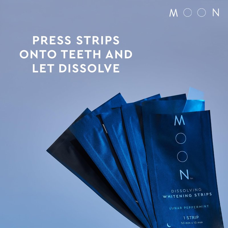 MOON Teeth Whitening Strips, 7 Shades Whiter in 2 Weeks, 28 Treatments with Easy to Use Dissolvable Strips, Enamel-Safe Formula, Gentle on Sensitive Teeth, Vegan, Freshening Mint Flavor, 56 Strips