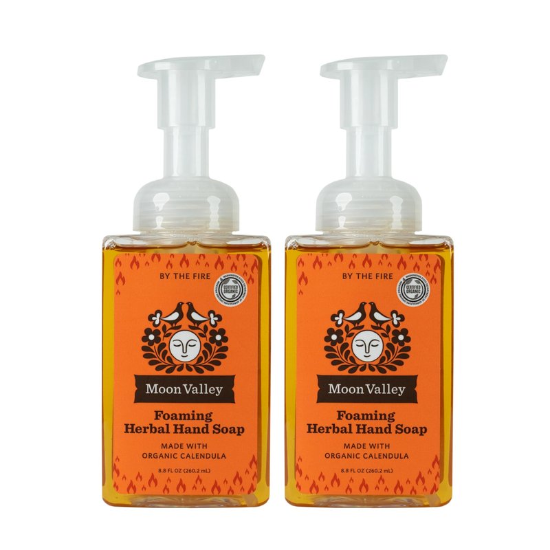 Our nourishing recipe for soft washed hands makes this two-pack a great purchase. Our velvety herbal hand soaps combine calendula with the healing and soothing powers of comfrey to gently, but thoroughly cleanse and moisturize hands without the use of harsh chemicals. Pure Ingredients By the Fire-Moon Valley Organic Calendula and Moon Valley Organic Comfrey infused oils of Organic Coconut and Organic Sunflower, Potassium Hydroxide*, Organic Castor oil, Organic Lemon and Organic Rosemary essential oils. That's it. Mint Lavender- Moon Valley Organic Calendula and Moon Valley Organic Comfrey infused oils of Organic Coconut and Organic Sunflower, Potassium Hydroxide*, Organic Castor oil, Organic Mint, Organic Lavandin and Organic Lavender essential oils. That’s it. Grapefruit Thyme- Moon Valley Organic Calendula and Moon Valley Organic Comfrey infused oils of Organic Coconut and Organic Sunflower, Potassium Hydroxide*, Organic Castor oil, Organic Grapefruit and Organic Thyme essential oils. That's it.