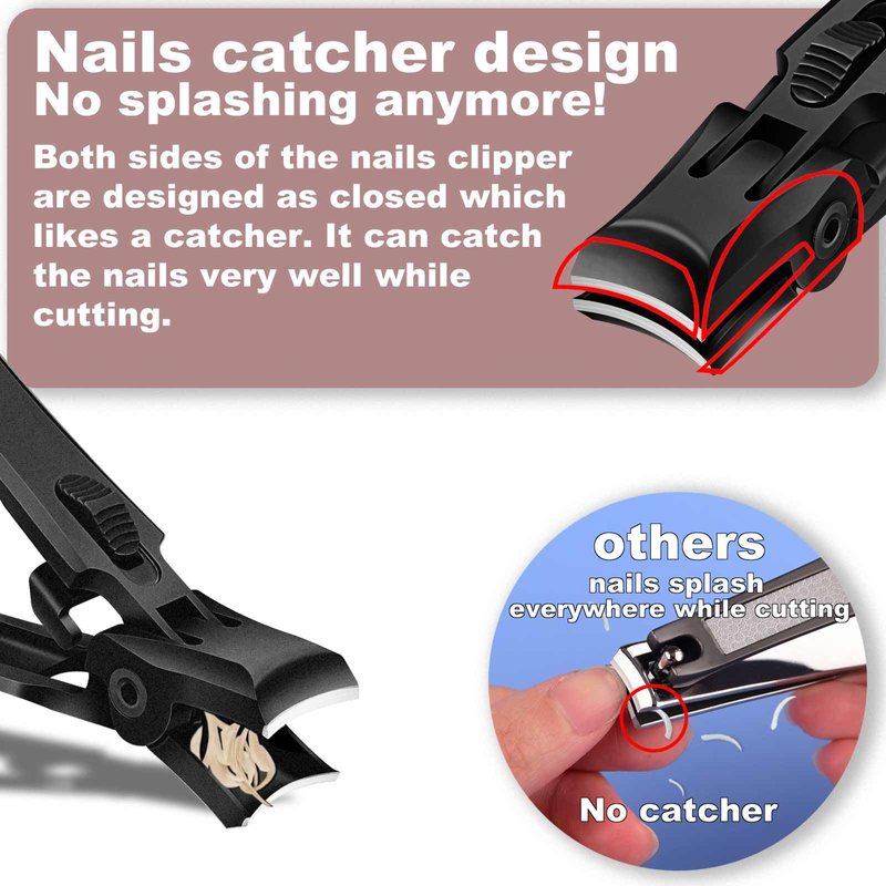 - Nail catcher: The built-in nail catcher collects the trimmed nails and keeps them from falling to the floor, making cleanup a breeze. The catcher is transparent, allowing you to see the nails and ensure that they are fully caught.