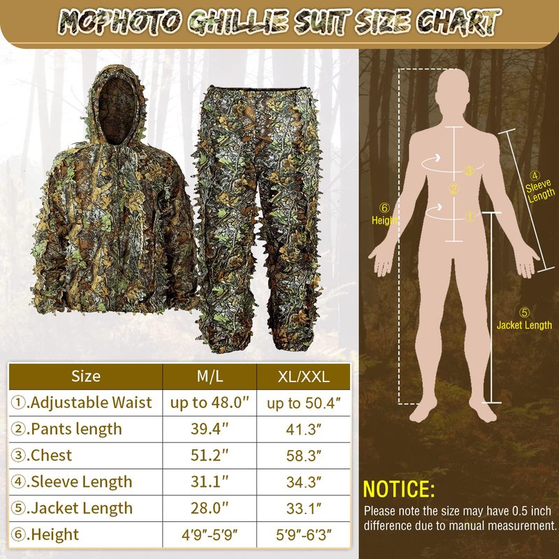- 【1-YEAR Hassle-Free Warranty】 1-year manufacture guarantee for MOPHOTO 3D Leafy Ghillie Suit, 30-day money-back guarantee replacement warranty. If you have any questions about Mophoto Gilly Suit, please contact us freely!