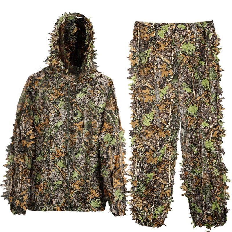 MOPHOTO Ghillie Suit 3D Leafy Camo Hunting Suits, Woodland Gilly Suits Gillies Suits for Men, Leaf Camouflage Hunting Suits
