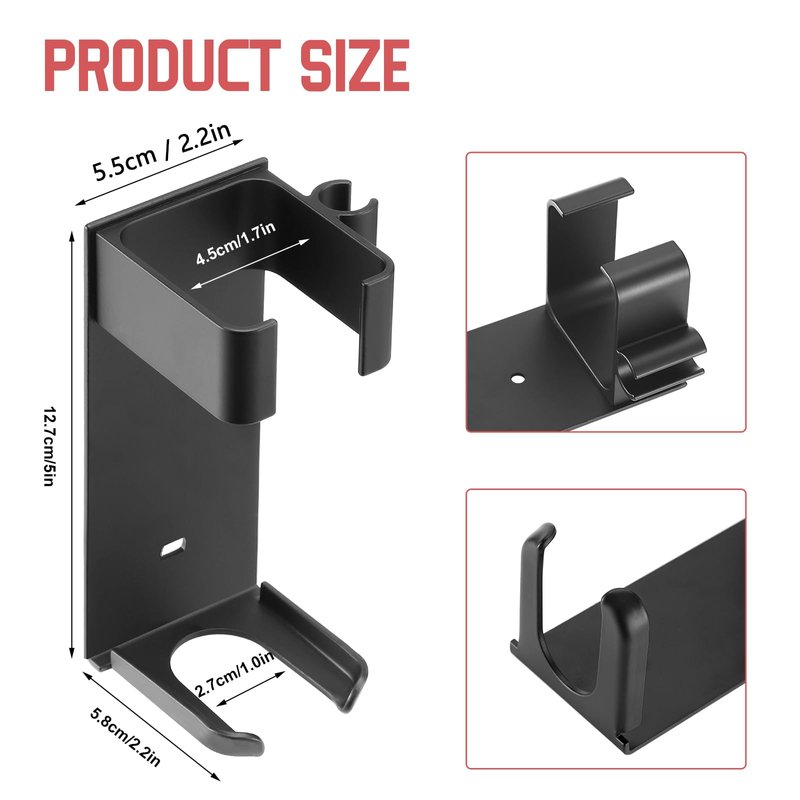 - 【Save Space】This wall mounted holder can vertically store your hairdressing tools and keep your countertop clean. On the right side of the holder, there is also a clamp for cable storage and plug fixation.