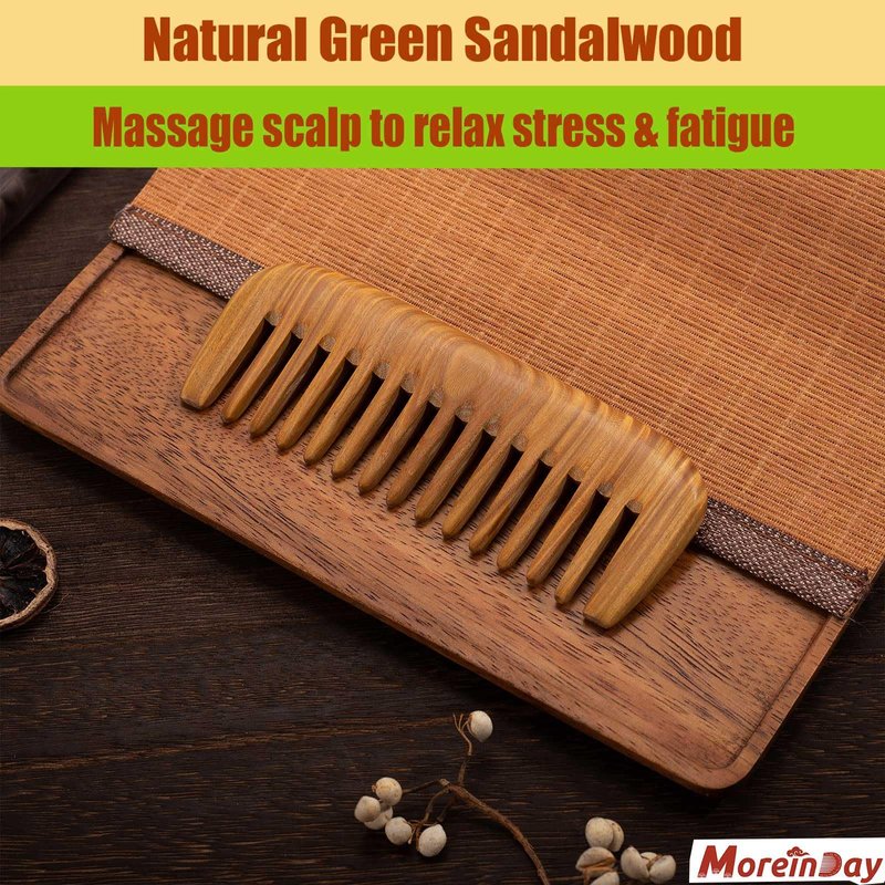 Moreinday Wooden Comb for Hair Growth, Wood Comb for Women, Wooden Wide Tooth Comb for Women, Wooden Hair Comb for Men - Green Sandalwood
