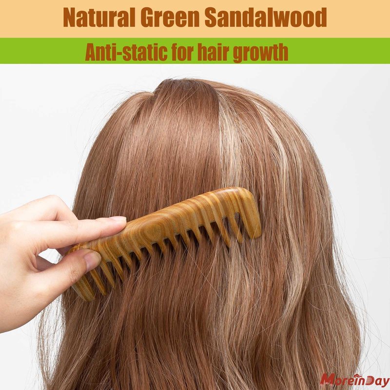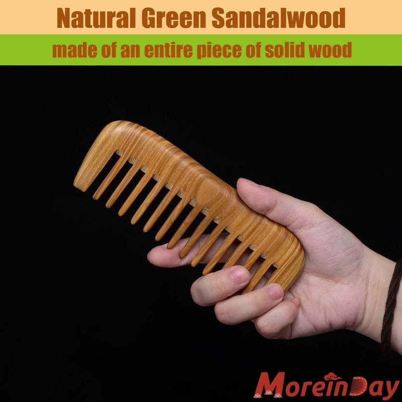 - Wide Tooth Comb: green sandalwood, heavy, dense, fine-grained, well polished, gentle for scalp and hair, has a mild wood fragrance, comfortable to hold in hand, multifunctional for scalp masssage and hair detangling