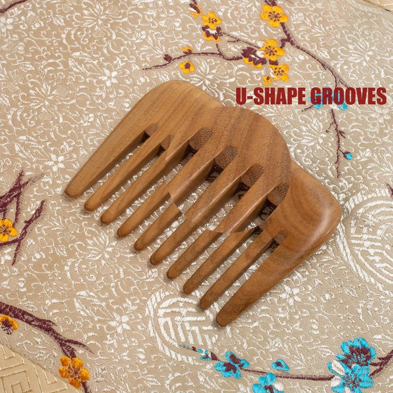 - Natural wooden wide tooth comb: Size 3.9x2.7 inches, the wide tooth comb is made of solid and durable green sandalwood, with natural and lasting fragrance, well polished, smooth. After dozens of traditional craft processes, wood hair combs with round tooth & U-shaped tooth grooves can smoothly go through your hair and beard without hurting your scalp and skin