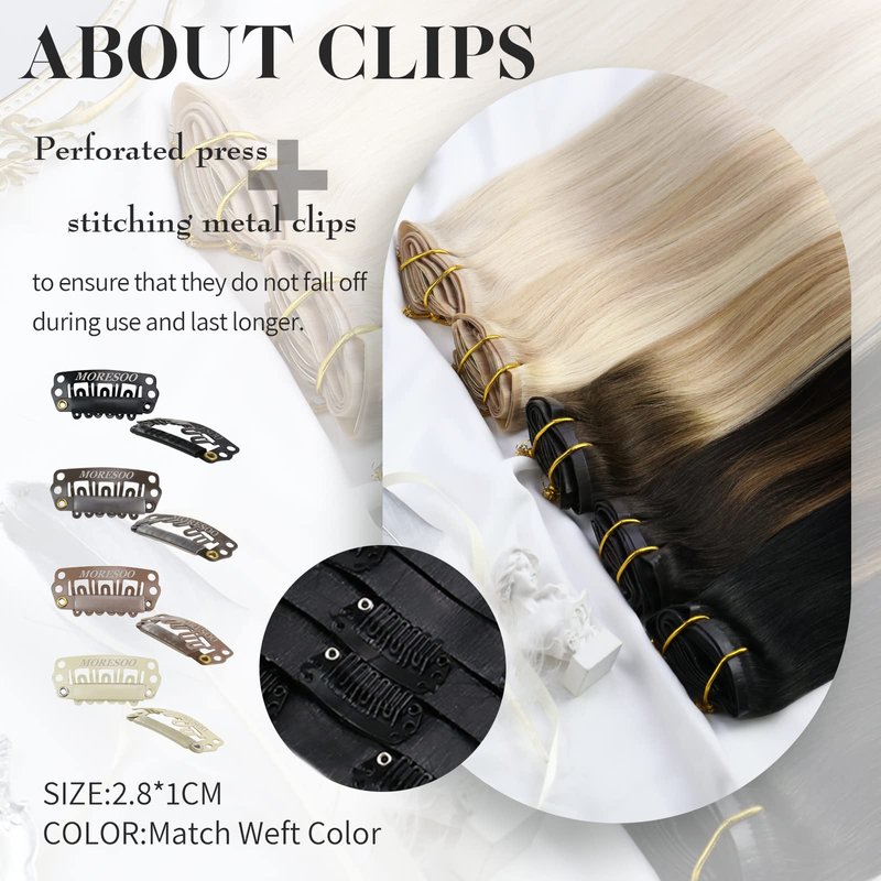 - Material: Moresoo seamless clip-in hair extensions are crafted from remy human hair. The cuticles are intact and aligned, which minimizes tangling and enhances the spanlife of the extensions. This premium material can provides soft and silky texture
