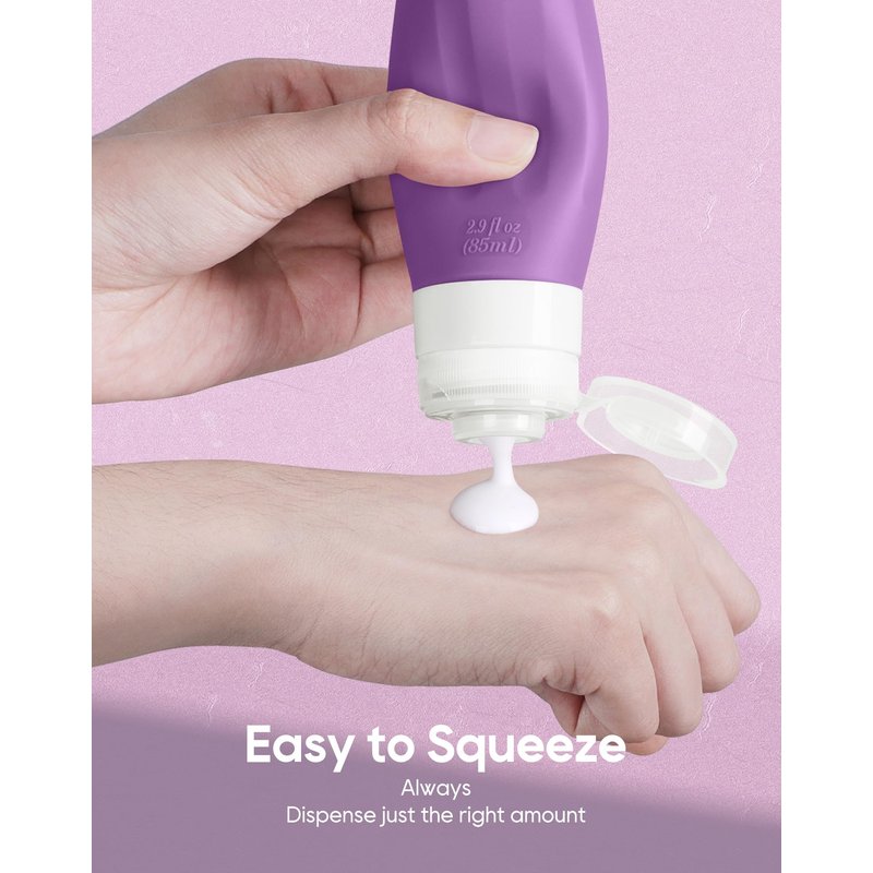 - 【SILICONE & SQUEEZABLE】Made of food grade Silicone which is BPA free and non-toxic, feel soft, flexible and comfortable instead of hard like traditional plastic travel bottles. The silicone is thick and durable but can be squeezed easily