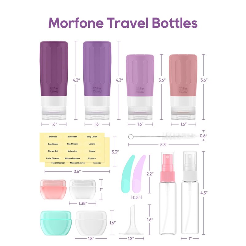 Morfone 16 Pack Travel Bottles Set for Toiletries, TSA Approved Travel Containers Leak Proof Silicone Squeezable Travel Accessories 2oz 3oz for Shampoo Conditioner Lotion Body Wash (BPA Free)