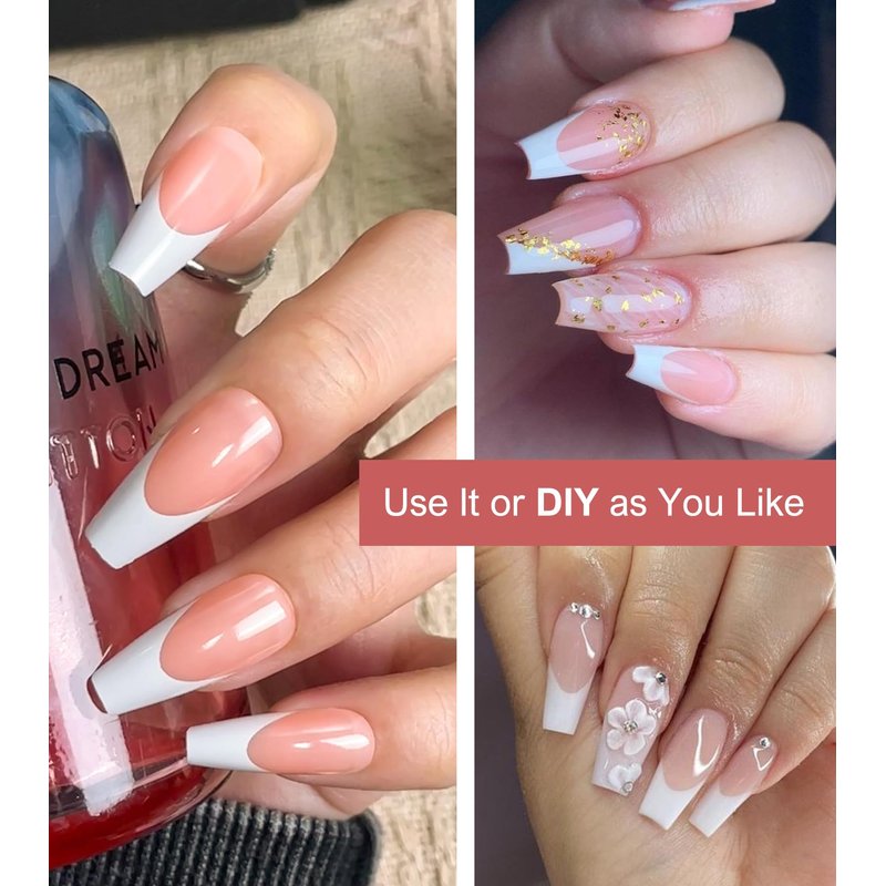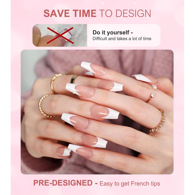 - ❤NOT EASY TO FADE - A top coat has been added to these long coffin french tip press on nails to protect the French coating and help these nails not fade easily. If you add another gel building and an additional top coat, they will last for 30+ days without losing color. They are also great as a gift for your girlfriend, mom, sister, or bestie