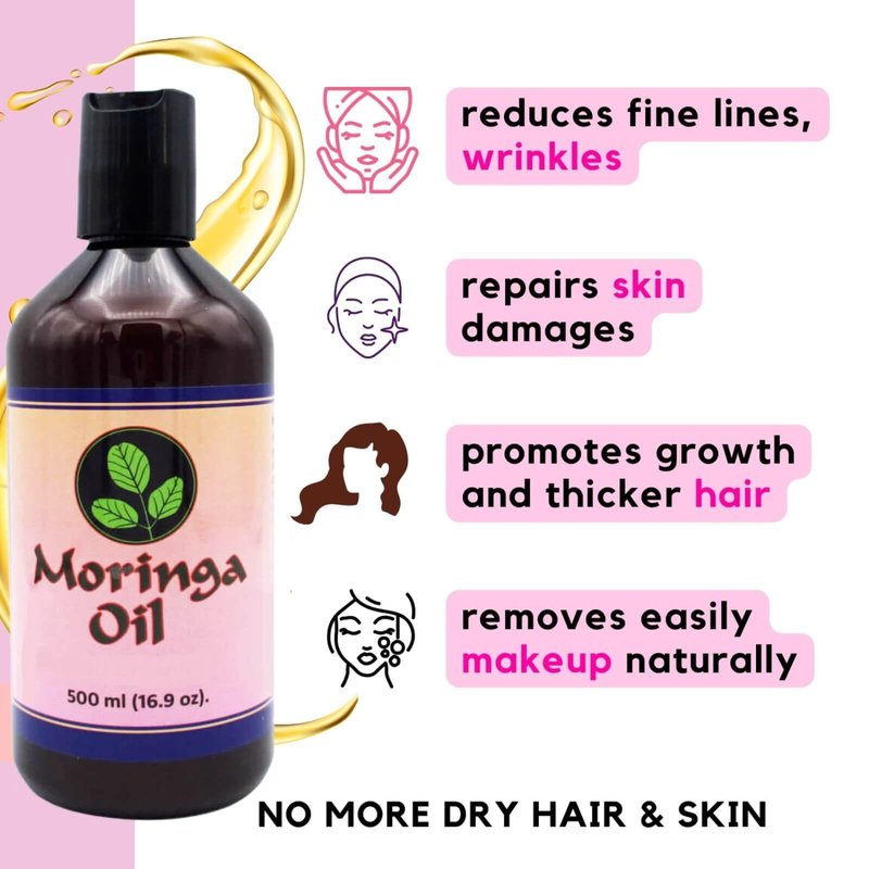 - Nourish Your Skin With Cold-Pressed Moringa Oil: Our Moringa oil is obtained by cold-pressed extraction of moringa seeds. This premium Moringa Oil is 100% pure, unrefined, virgin and free of additives. Suitable for all skin types, with antioxidants that rejuvenate skin and hair, our moringa oil for face, hair, skin, and body has powerful anti-aging benefits that helps support hydration, and moisture for fine lines and wrinkles.