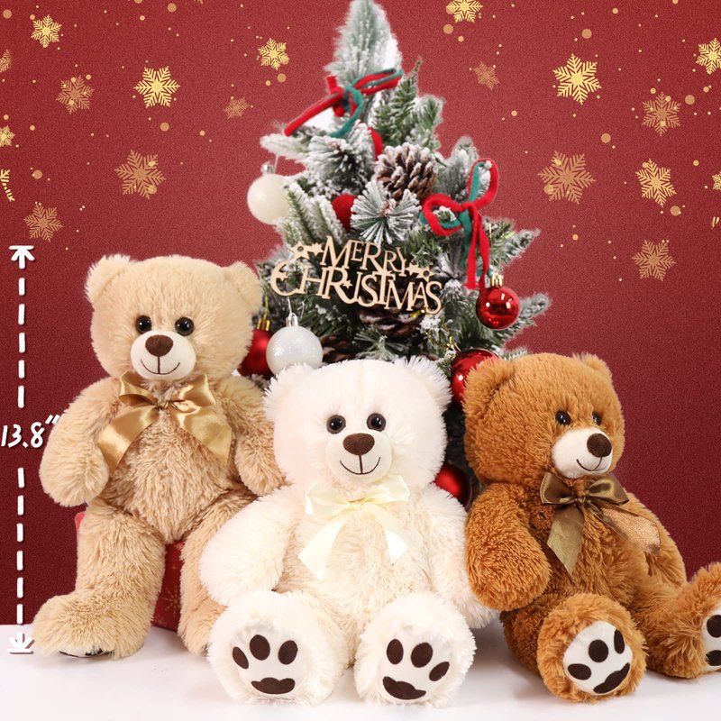 Safety is our top concern. All teddy bears are well made of high-quality fabric, tightly stitched. The eyes are double-reinforced and not easy to fall off. The cute3-pack teddy bear in bulk with a big smile is friendly for most ages.