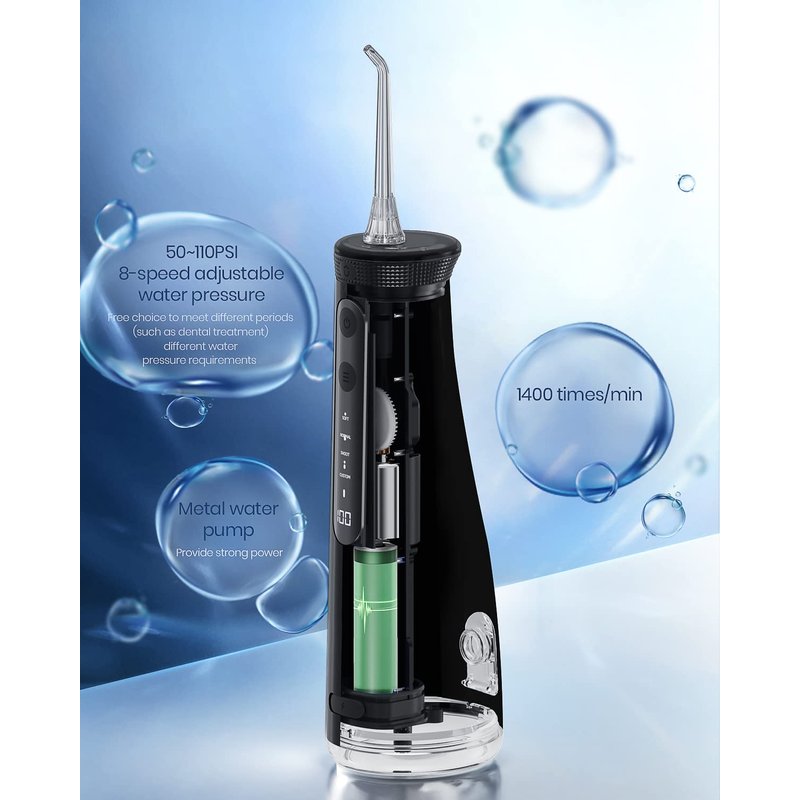 - Powerful Portable Irrigator:150 days super battery life, 1,400 ultrasonic water pulses/min for comfortable cleaning of teeth.