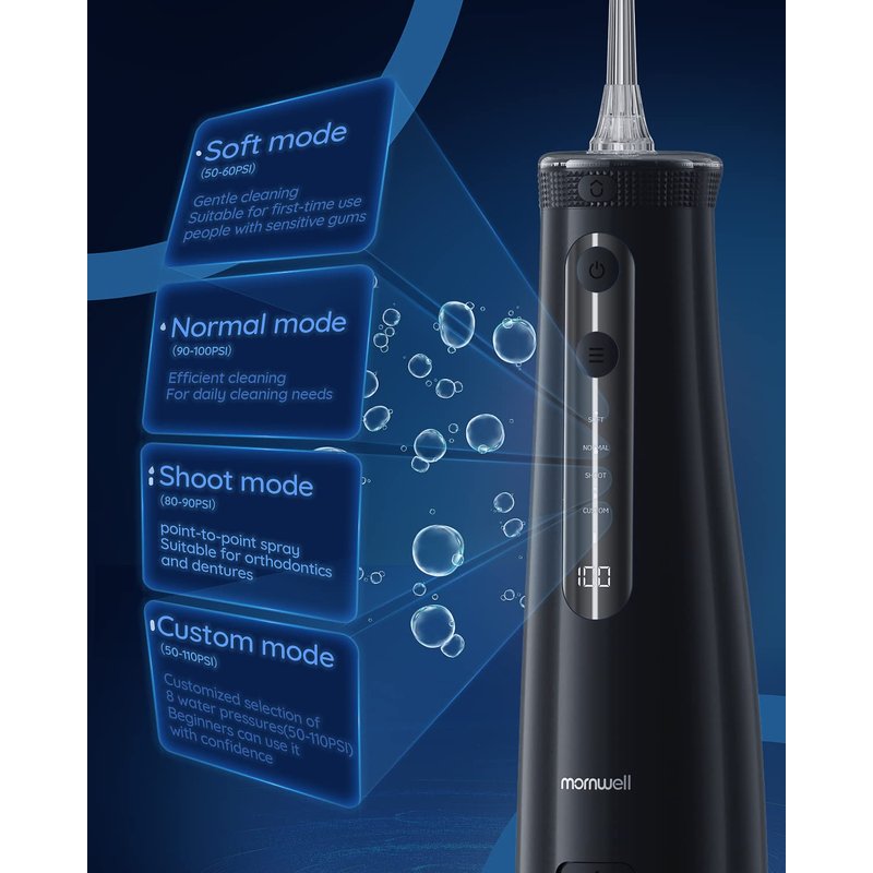 MORNWELL Water Flossers For Teeth 270ML Integrated Water Tank With LCD Display 4 modes 6 Jet Tips USB Rechargeable Water Teeth Cleaner Pick For Home Travel