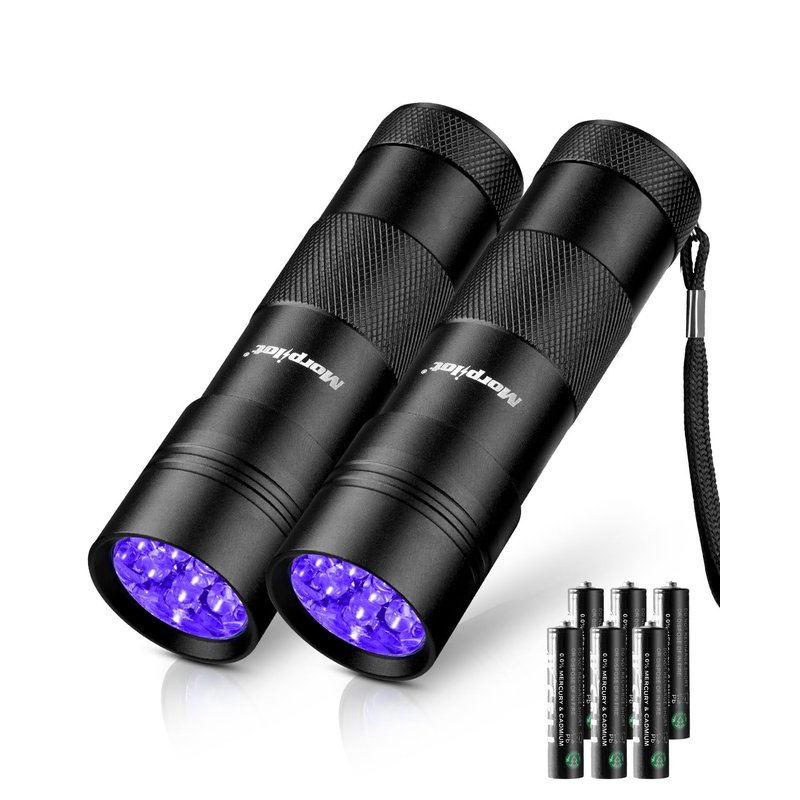- Brighter Light: Morpilot uv light with 12 engineering-enhanced LED bulbs, our black light flashlight mini is 30% brighter than other flashlights. UV flashlight uses 3 AAA batteries (included).