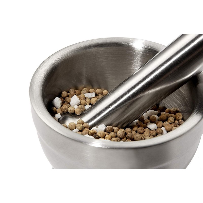 - ROCK-SOLID MORTAR AND PESTLE: Food grade indestructible 18/8 stainless steel Made, rustproof and anti-Corrosion. Pretty sturdy, durable, non-toxic, Long-lifespan, can be used for decades.