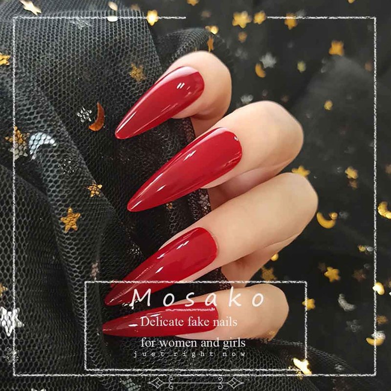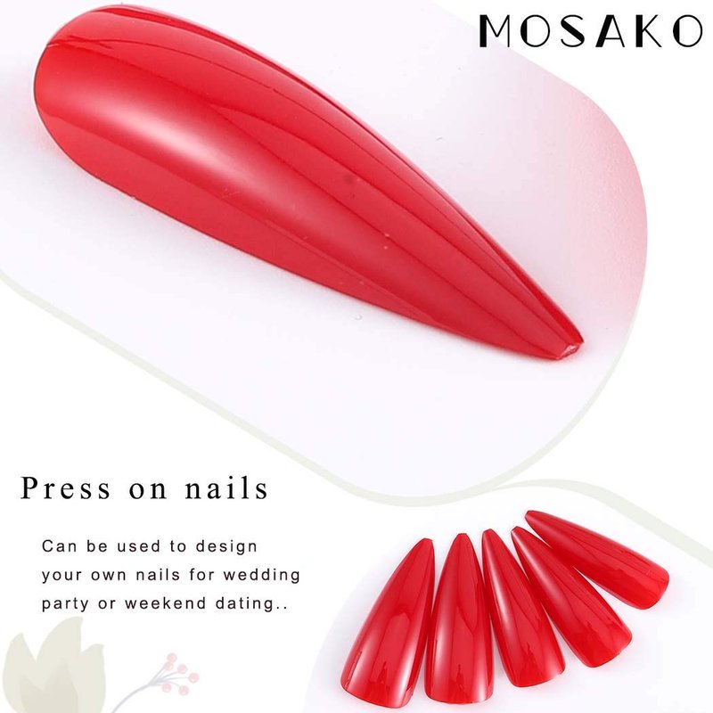 Mosako Stiletto Press on Nails Extra Long Fake Nail Red False Nails Tips Glossy Full Cover Acrylic Nails Faux Fingernails Manicure Designed Stick on Nails for Women and Girls 24Pcs