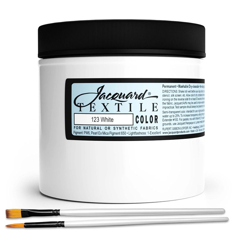 Moshify Jacquard Products White Textile Color Fabric Paint 8-Ounces - Bundled Brush Set
