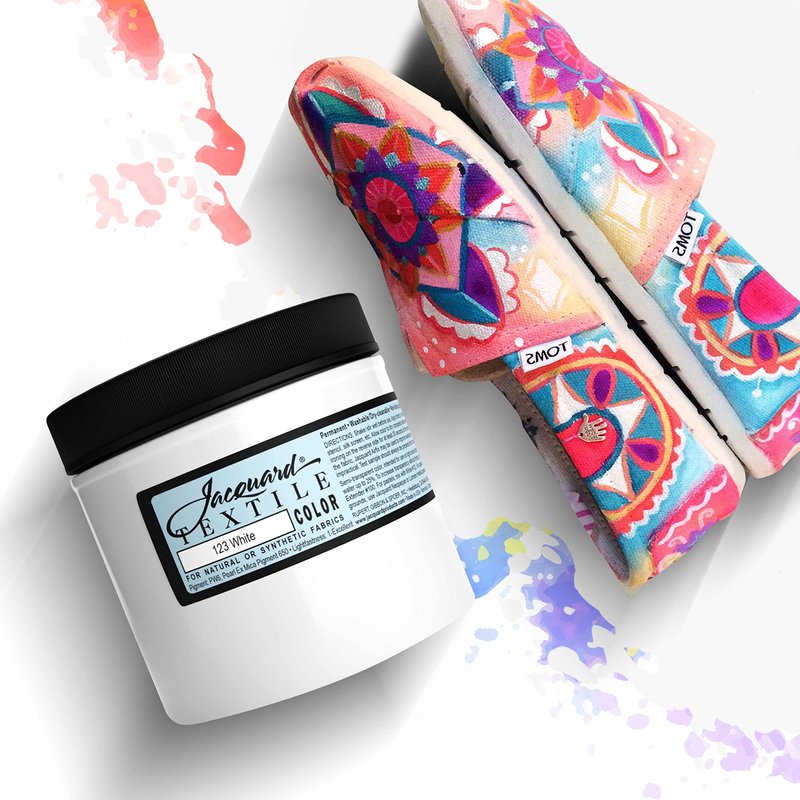 Jacquard white fabric paint works on a wide variety of mediums including synthetic fabrics, leather, wood, shoes, canvas, paper and more!
