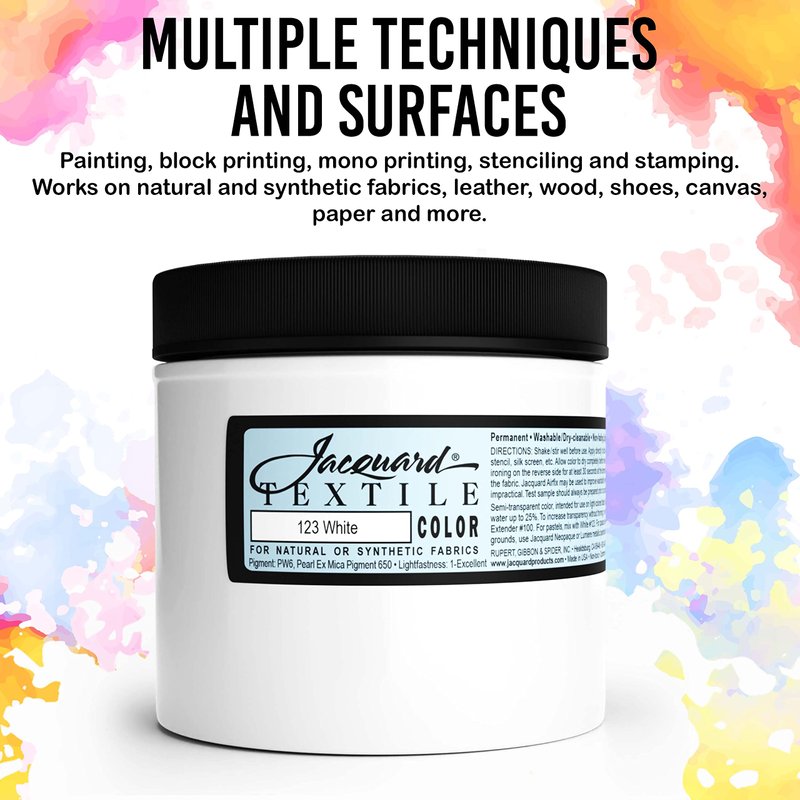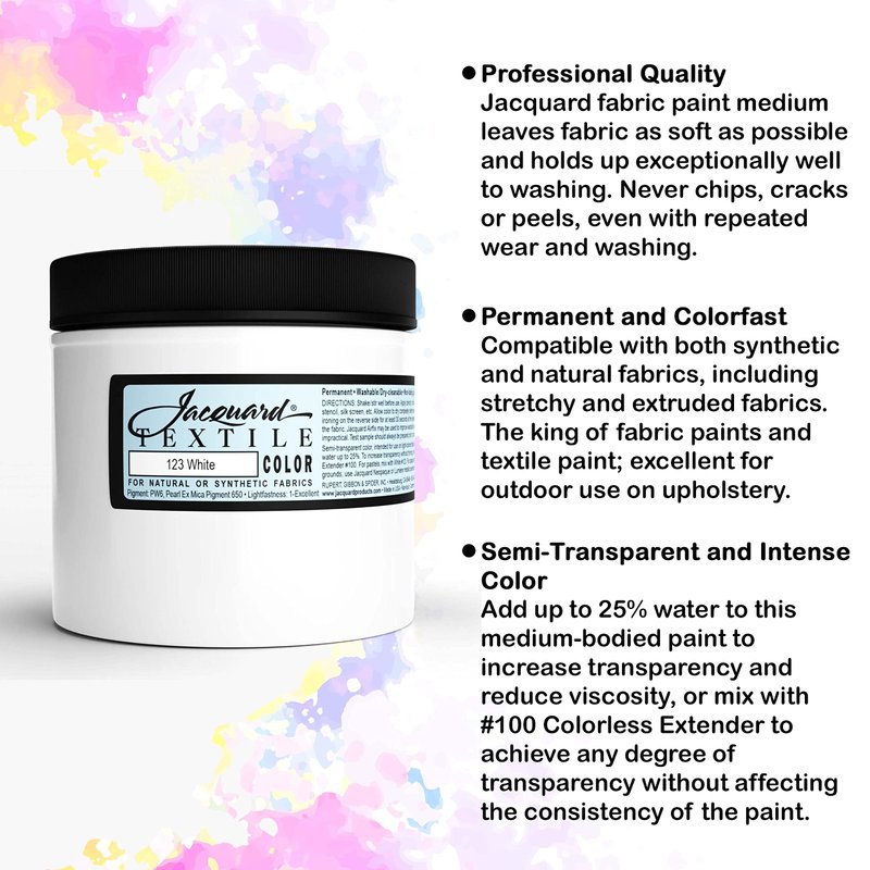 - Artist's Go To Fabric Paint - Jacquard textile color leaves fabric as soft as possible and holds up exceptionally well to washing. Textile color never chips, cracks or peels, even with repeated wear and washing.