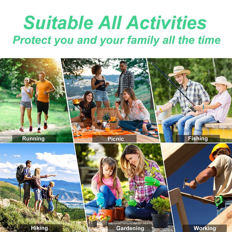 Mosquito Repellent bands could protect you up to 350 hours. The combination of the natural substances will keep the mosquito away from you effectively. Perfect for hiking, BBQ, gardening, fishing and traveling.