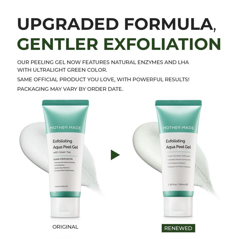 - Super Gentle Exfoliation To Skin: Unlike harsh microdermabrasion scrubs or strong chemical acid peels that dissolve proteins, MOTHER MADE Exfoliating Aqua Peel Gel is formulated with moisture-rich cellulose fiber that softly balls up with grime only, without strong chemicals or stress to skin
