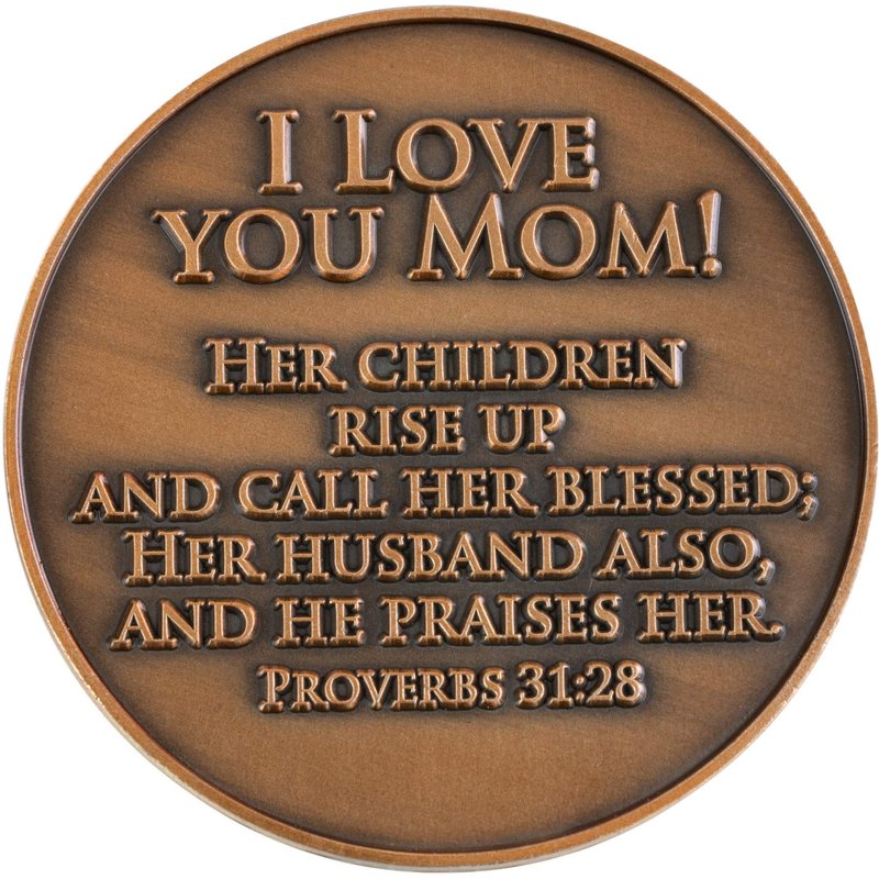 Mothers Coin, I Love You Mom Token of Appreciation, Gift for Mom, Mother's Day or Birthday Gifts for Mom from Son, Daughter, or Husband. Proverbs 31:28, Gift Idea for Women Who Have Everything