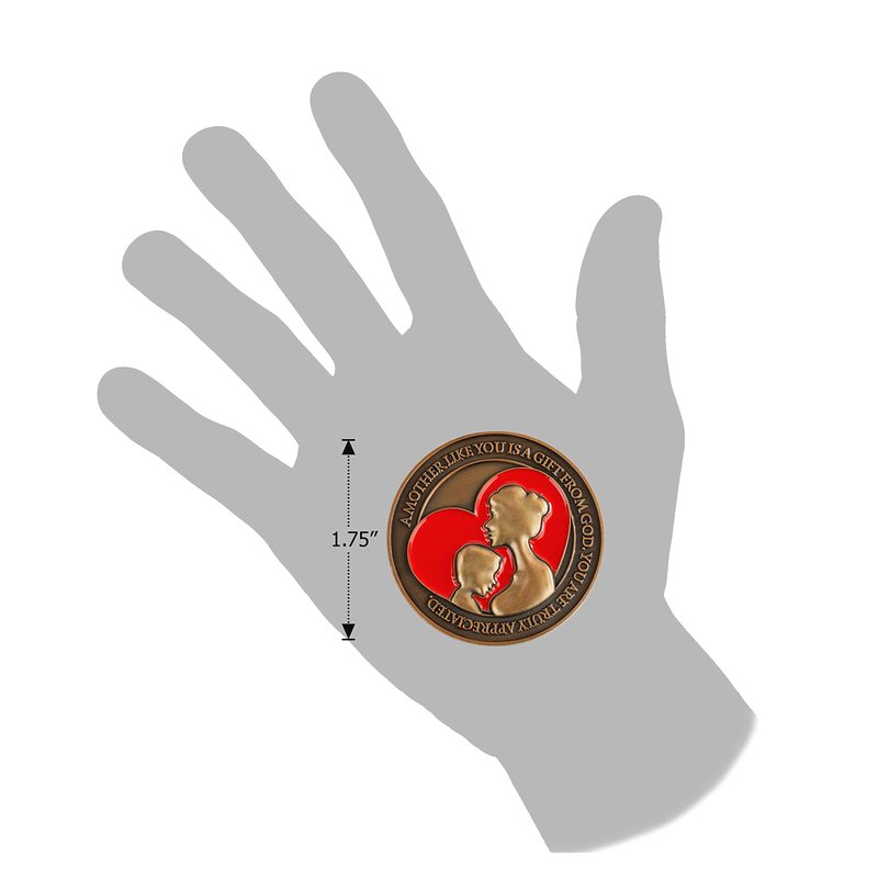 - HIGH-DETAIL PASS ALONG TOKEN: At over 35 grams, this inspiring pocket coin has a solid heft and feel, and is a unique Mother's gift for her. It also combines a high quality antique gold plating with a bright red enamel to really make the details pop off the coin! A perfect gift to say "I love you" to any Mother. Your mom may have everything, but she does not have this coin! Let her know that she has something money can't buy - your love!
