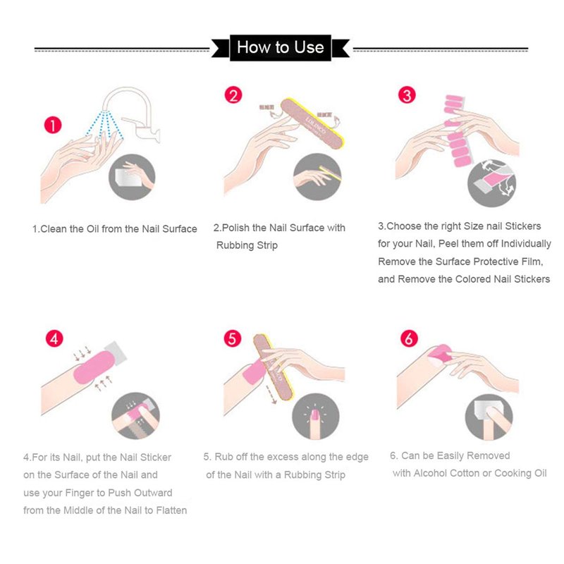 A. Clean your nails before use, leave them to dry and then compare the stickers to your finger shape.