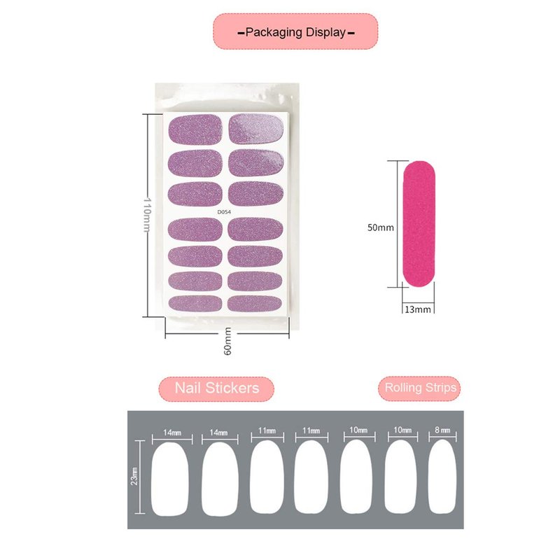Our nail polish strips are adhesive, easy to use without hurting your natural nails, just paste the decal you like on the surface of your toe nails, convenient to stick or peel off, time-saving, suitable for home DIY nail art.