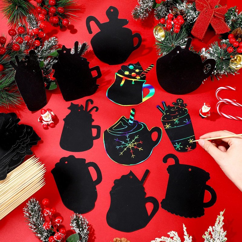 - Unleash Your Creativity: prepare to be captivated by the hot cocoa patterns hidden beneath the surface of these Christmas scratch papers; Experience the joy of scratching and revealing an artistic masterpiece, ideal for your Xmas celebrations