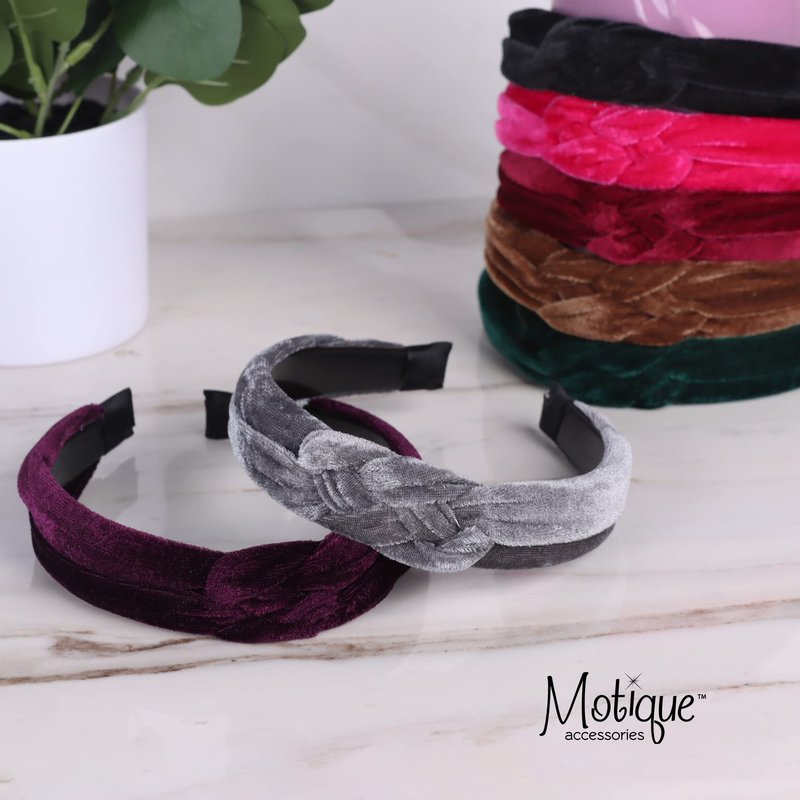 - This is a quality velvet headband with a braid across the top of the headband