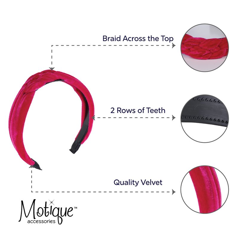 Motique Accessories 1.5 Inch Velvet Braid Headband Women and Girls Hair Band (Hot Pink)