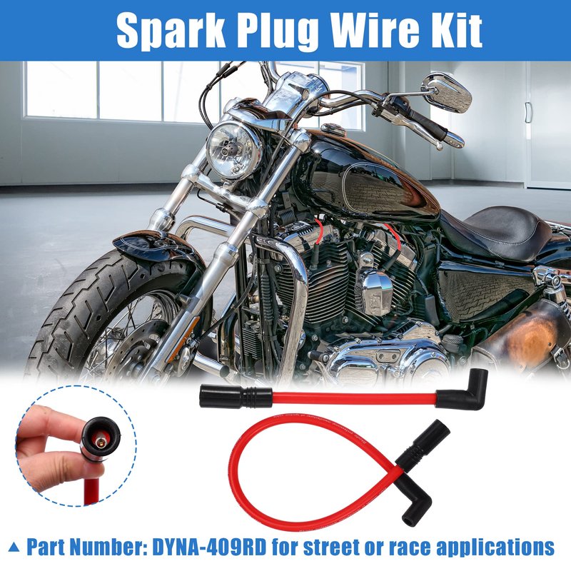 Motoforti 2 Pcs 10.4mm 10mm Spark Plug Wire Kit for Harley Davidson Big Twin FXD Dyna 2000-2017 for Harley-Davidson Softail 1999-2017 Spark Plug Wires Motorcycle DYNA-409RD Red Silicone