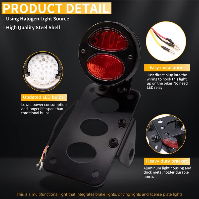 - 【Package Includes】- 1 x round tail light, 1 x license plate holder (with mounting accessories). Instruction not included, if you have any questions, please feel free to contact us