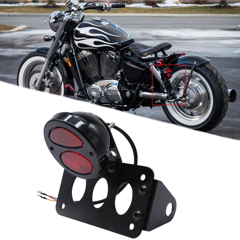 - 【Wide Compatibility】- Universal Motorcycle Tail Light with Side Mount License Plate Bracket, Compatible with Harley Honda Kawasaki Yamaha Suzuki Cruiser Bobber Chopper and other motorcycle models