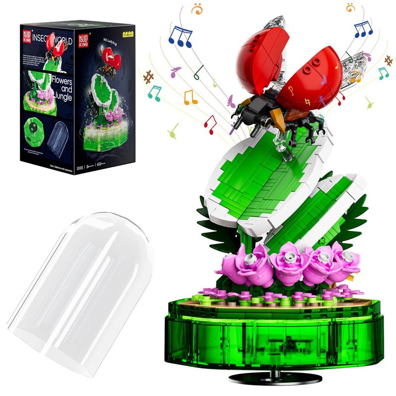 Mould King Insect Collections Ladybug Building Sets with Flower Building Blocks, Ladybugs Building Kits for Adults and Kid Boys Girls 8 9 10, 455 Pieces Natural Style STEM Toy Music Box with Lights