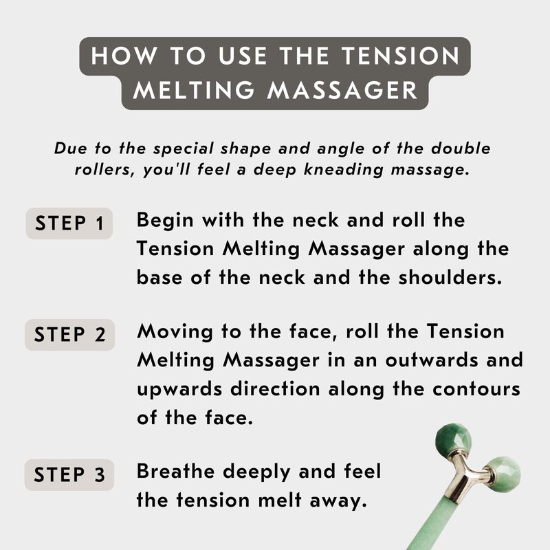 - Perfect facial roller for women for use with your favorite facial oil or serum, the Jade Tension Melting Massager helps to increase absorption and maximize the benefits of your skincare routine.