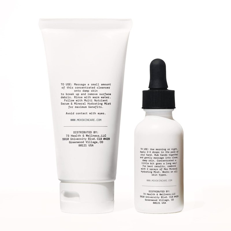 MOX Skincare Starter Set: Mint Face Cleanser (3.4 oz) + Nutrient Face Serum (1oz)