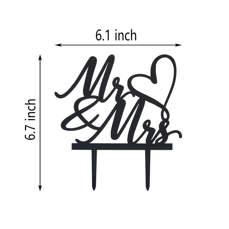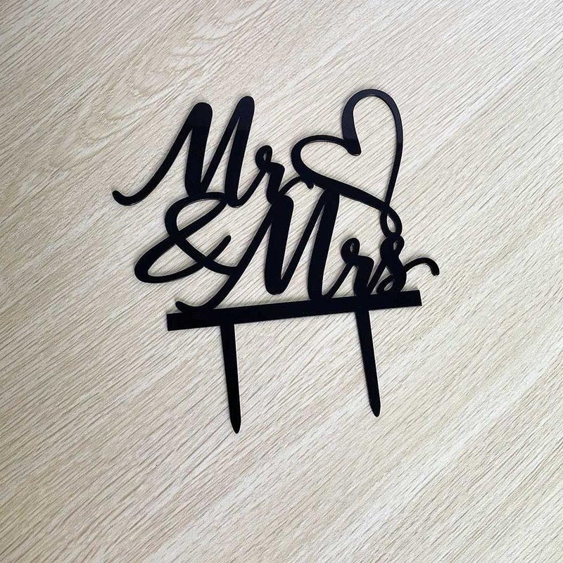 Mr and Mrs Cake Topper - Wedding, Engagement, Wedding Anniversary Cake Toppers Decorations, Black Acrylic